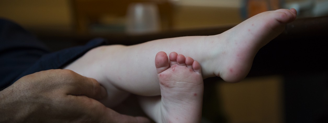 Die Hand-Fuß-Mund-Krankheit, auch bekannt als falsche Maul- und Klauenseuche, ist eine ansteckende Infektionskrankheit, die sich durch Ausschlag an Mund, Händen und Füßen zeigt. Dabei infizieren sich hauptsächlich Kinder zwischen dem 2. und 6. Lebensjahr, die Gemeinschaftseinrichtungen besuchen und in häufigem Kontakt zu anderen Kindern stehen. Aber auch Erwachsene können sich mit Hand-Fuß-Mund anstecken, entwickeln jedoch meist nur milde Symptome.